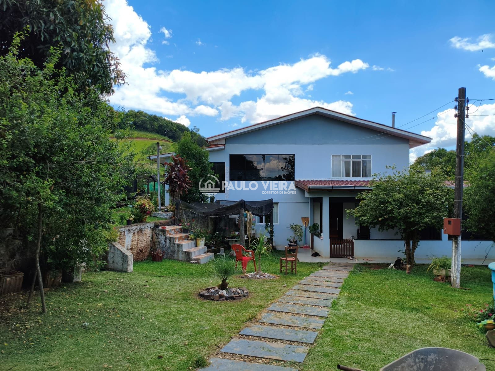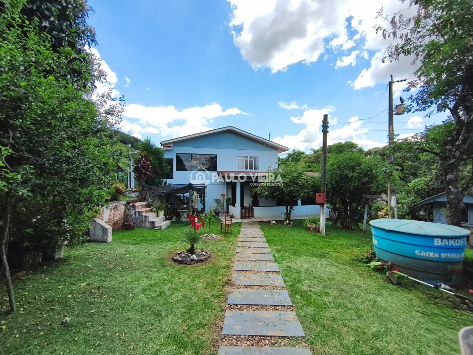 Uma residência imponente de dois pavimentos, medindo aproximadamente 300m² de área construída.