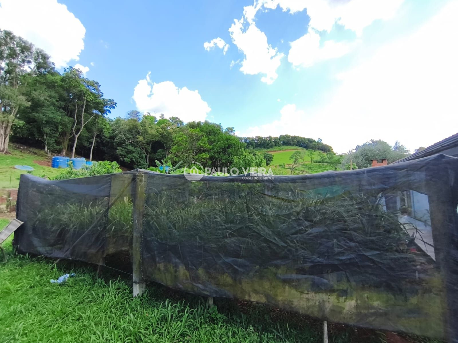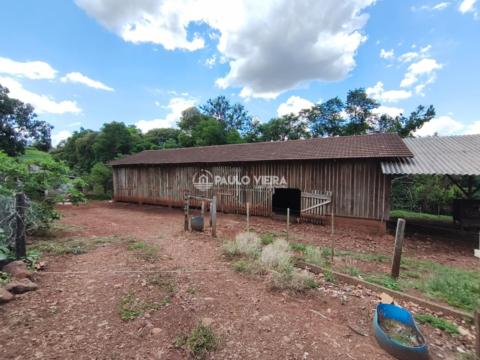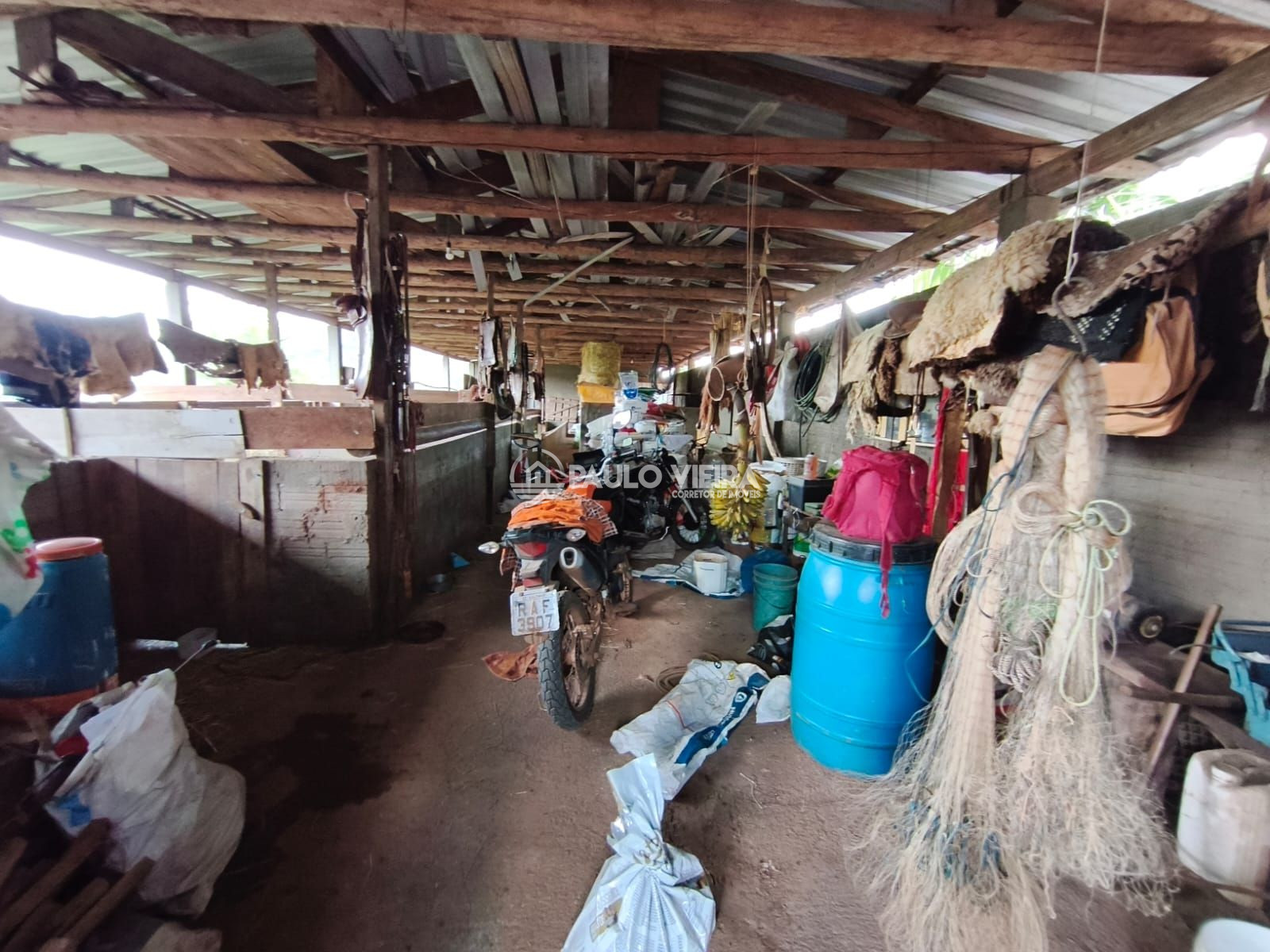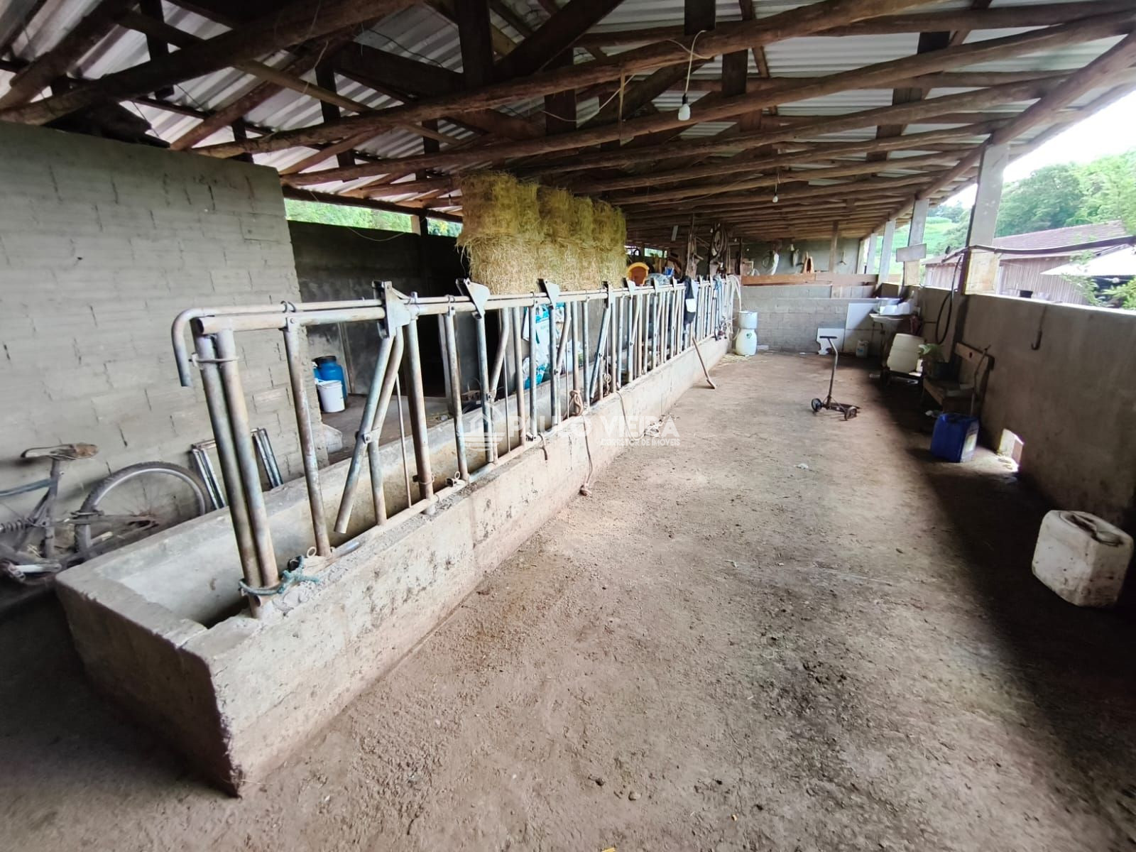 Galpão: Um barracão espaçoso para armazenamento de insumos, maquinários ou feno.